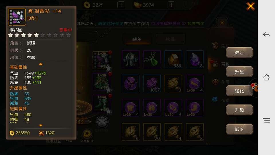 星级,颜色,强化等级一览无余,从装备的颜色上区别装备的优劣,白…绿…蓝…紫…橙…红!其中紫色以下都是可以通过游戏装...